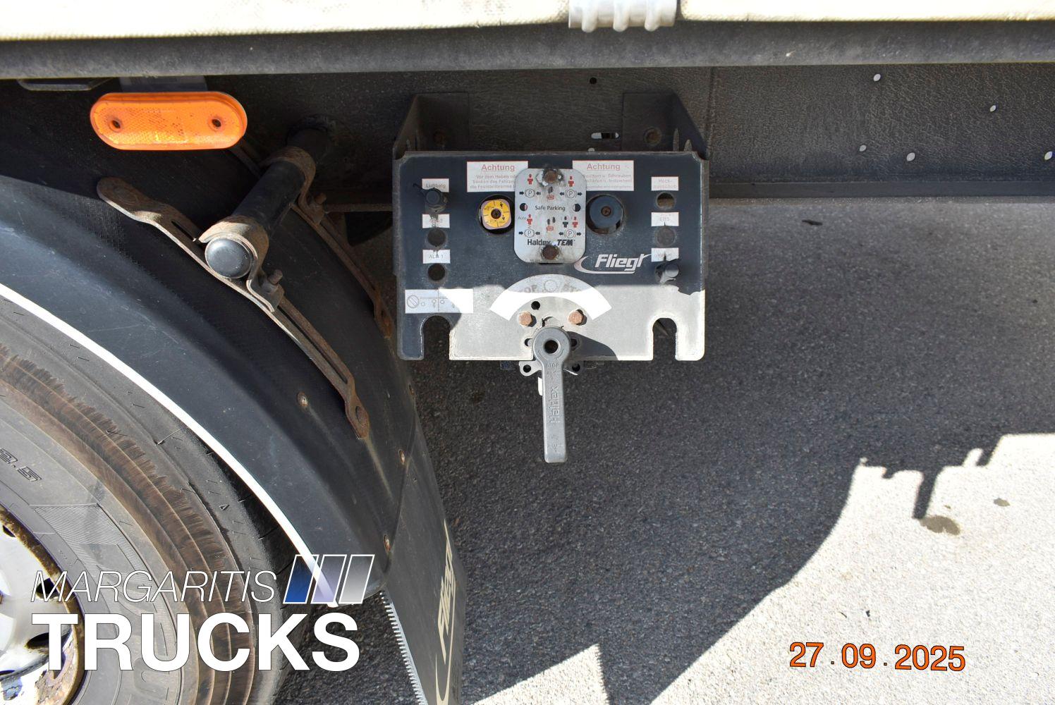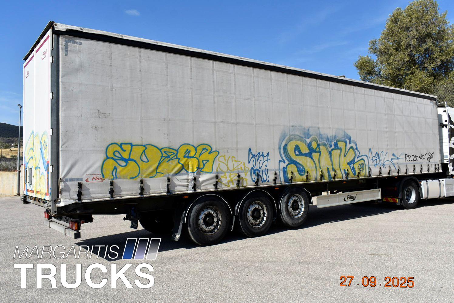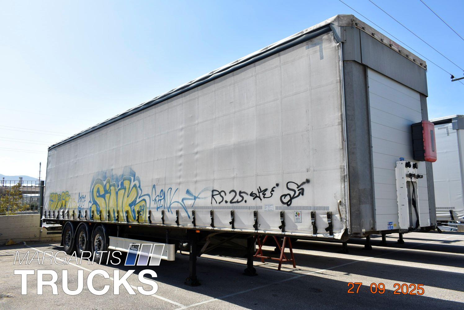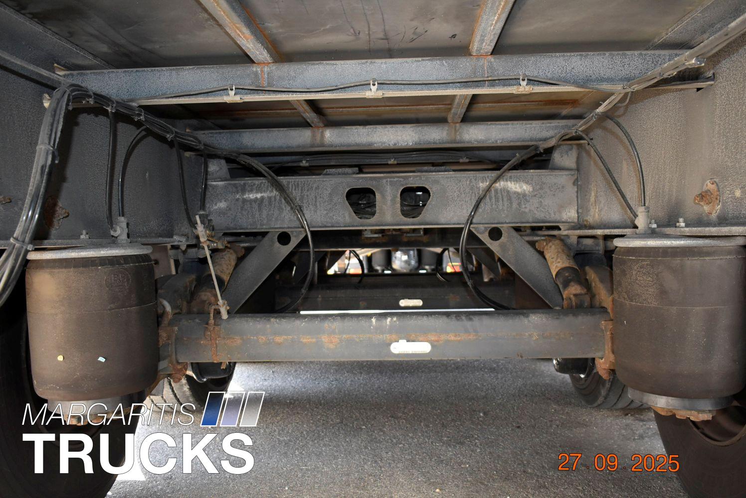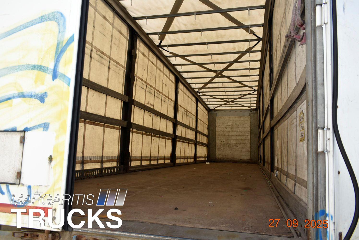 Μεταχειρισμενη επικαθημενη τριαξονικη κουρτινα. Πλαισιο από γαλβανισμένο χάλυβα. Αναρτηση αερος. Αξονες BPW Eco Plus με δισκοφρενα. ABS, EBS. Πρωτος αξονας αναρτωμενος. Οροφη συρομενη συστημα Edscha. Πορτες πισω με διπλά κλείστρα. Ελαστικα διαστασεων 385/65R22,5 με βαθος πελματος στο 70%. Χειριστηριο ελεγχου υψους στον πινακα ελεγχου. Προφυλακτήρας γαλβανισμένος. Φωτα ογκου περιμετρικά led. Εσωτερικο υψος 2800 mm, αποβαρο 6450 κιλα. Κατασταση αριστη.