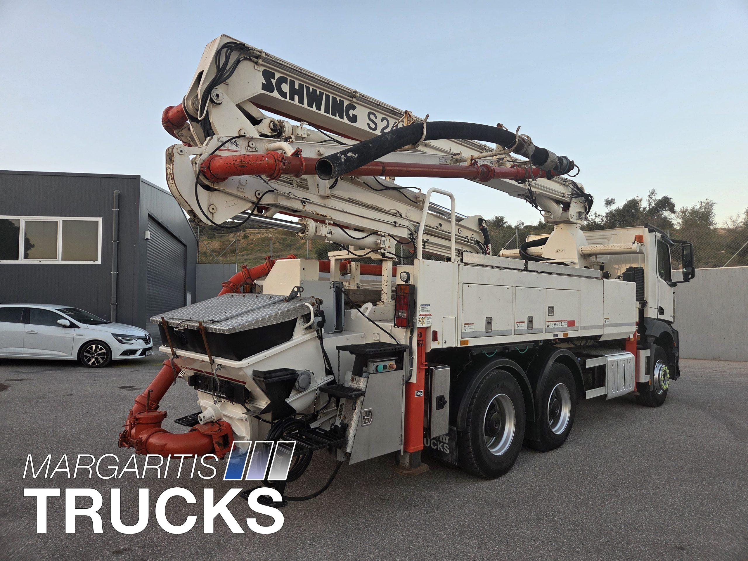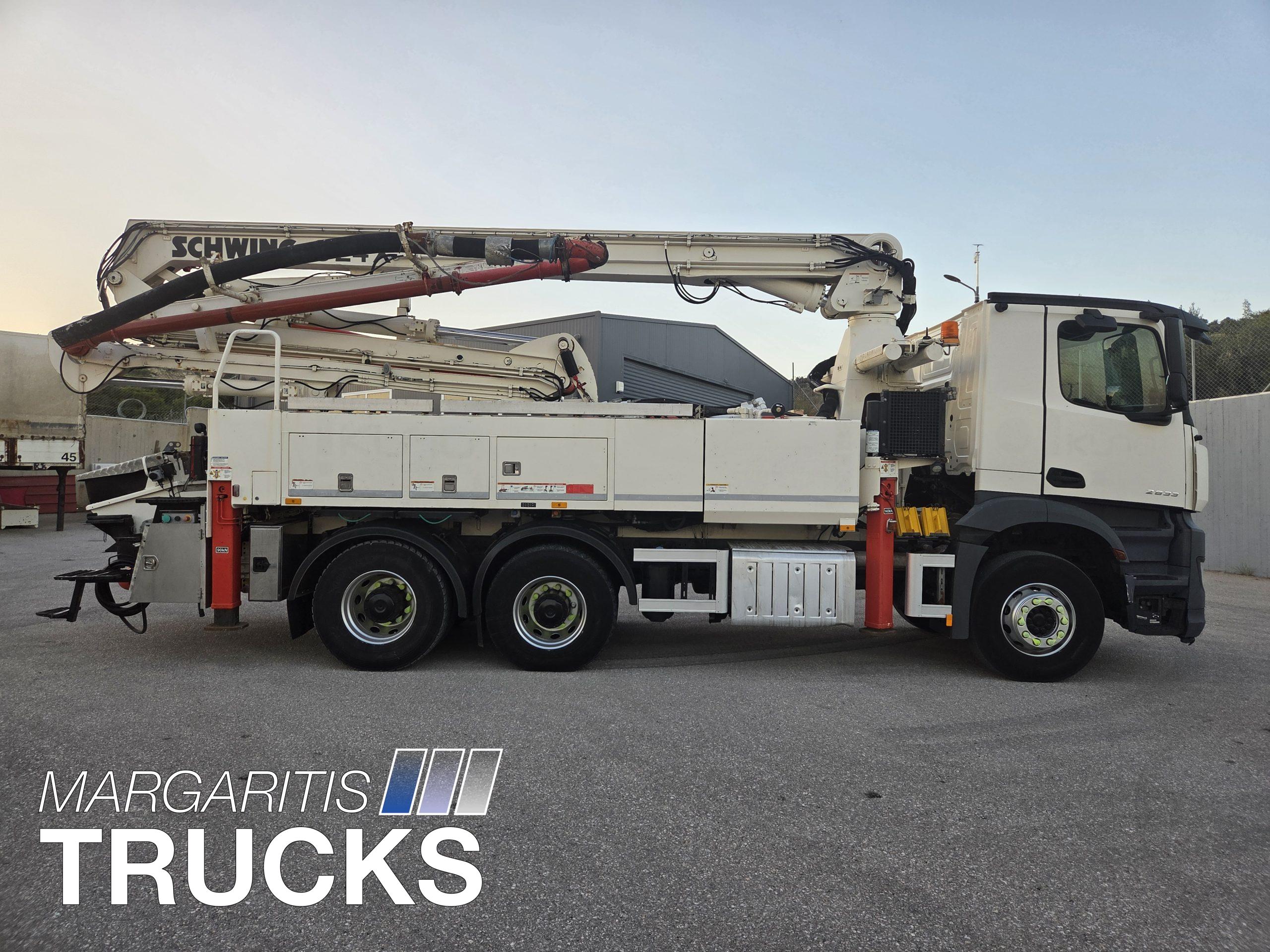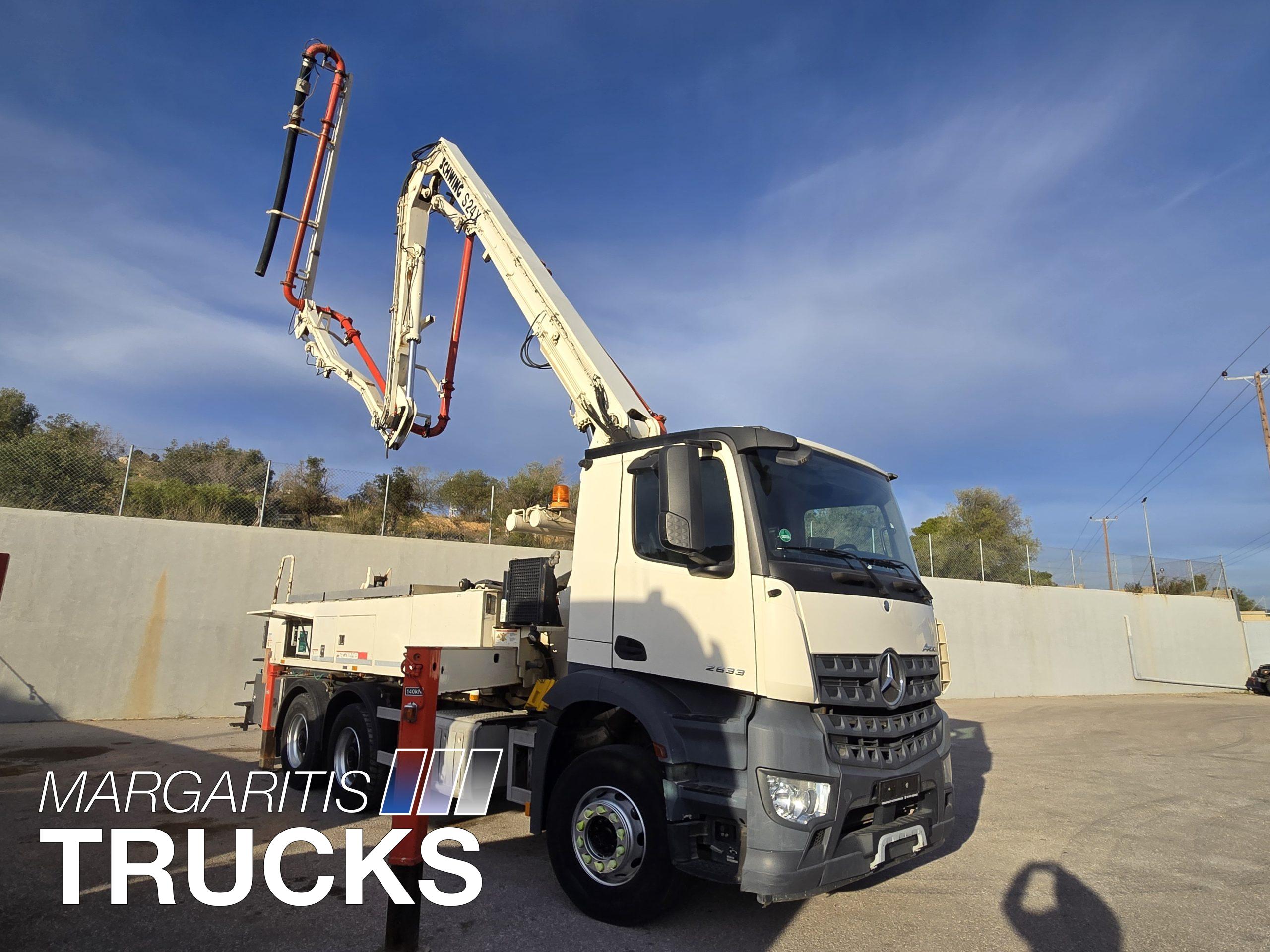 Μεταχειρισμενη αντλία σκυροδέματος Schwing τύπου 24 Χ με αντλητικό P 2023 110/75 RB αποδοσης 163 κυβ μέτρα /ώρα τοποθετημένη επι φορτηγου Mercedes Benz τύπου 2633 6Χ4 με κινητηρα ισχύος 330 ΗΡ/1800 στρ/λεπτό κατηγοριας καυσαεριων Euro 6.