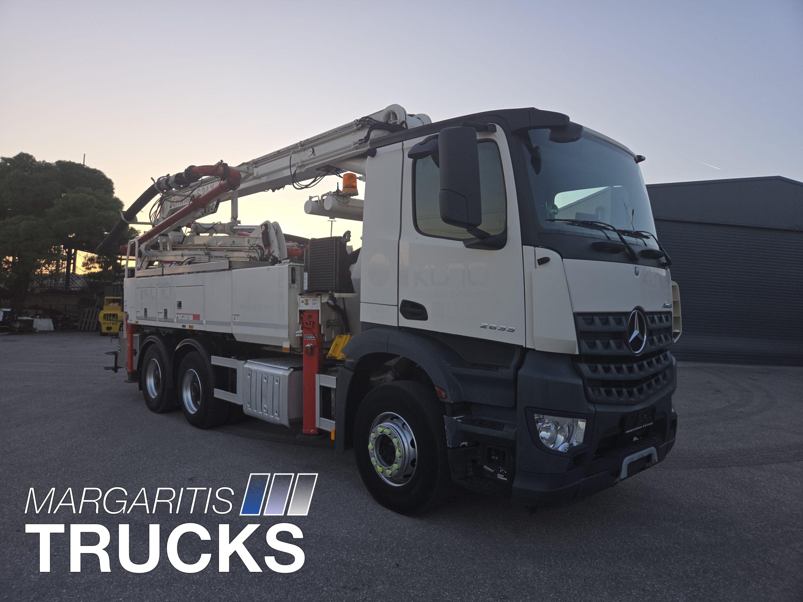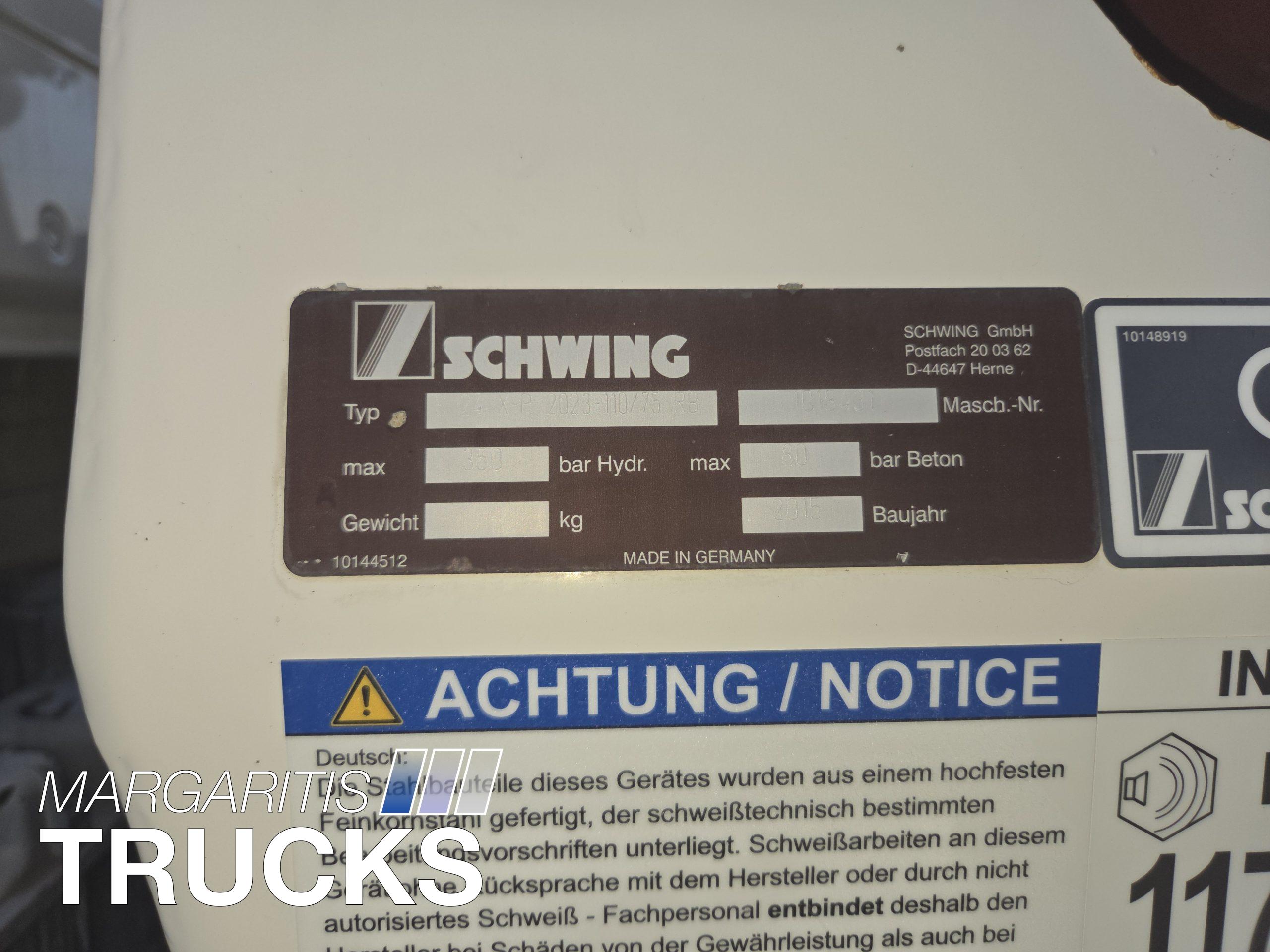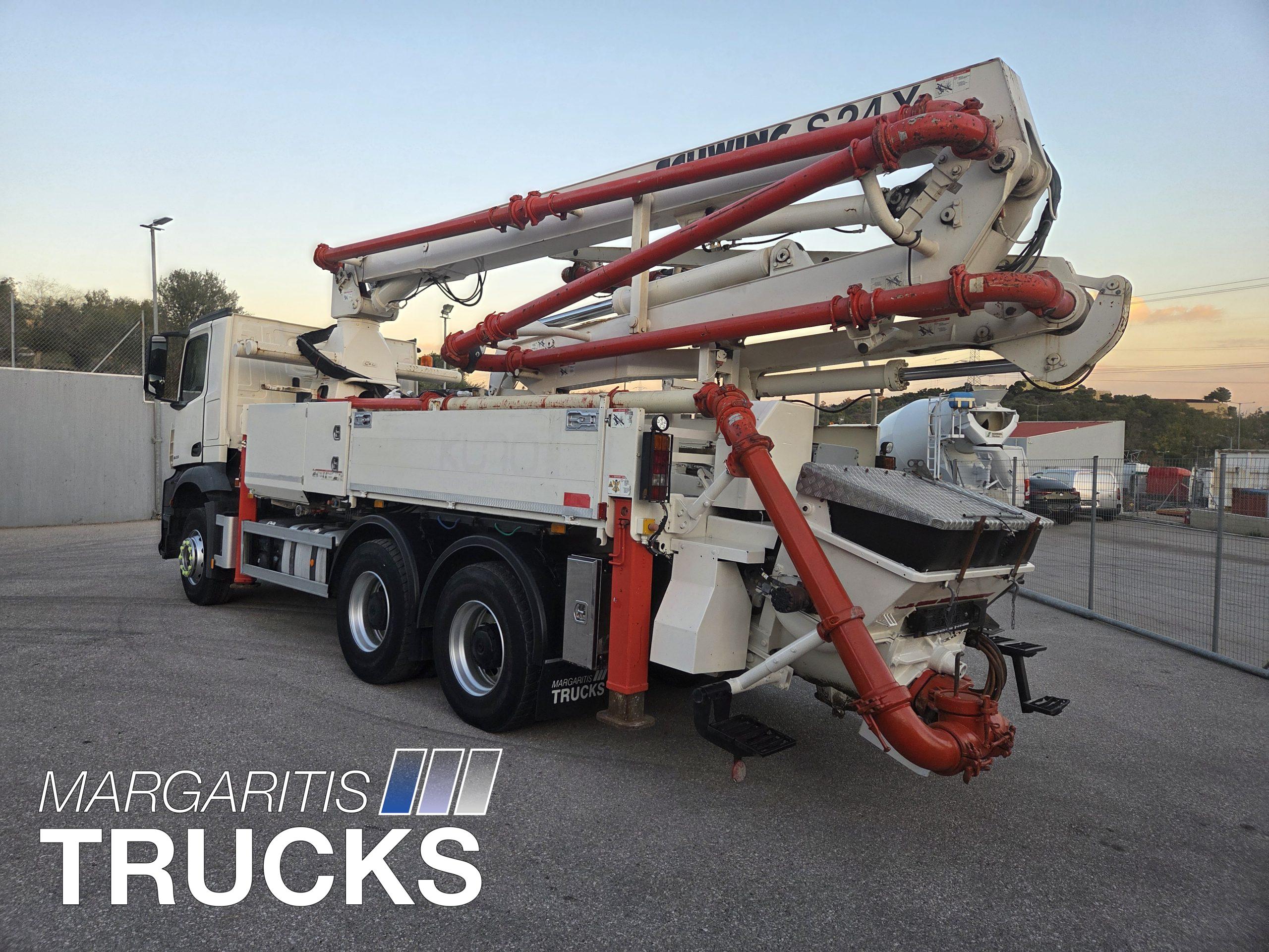 Μεταχειρισμενη αντλία σκυροδέματος Schwing τύπου 24 Χ με αντλητικό P 2023 110/75 RB αποδοσης 163 κυβ μέτρα /ώρα τοποθετημένη επι φορτηγου Mercedes Benz τύπου 2633 6Χ4 με κινητηρα ισχύος 330 ΗΡ/1800 στρ/λεπτό κατηγοριας καυσαεριων Euro 6.