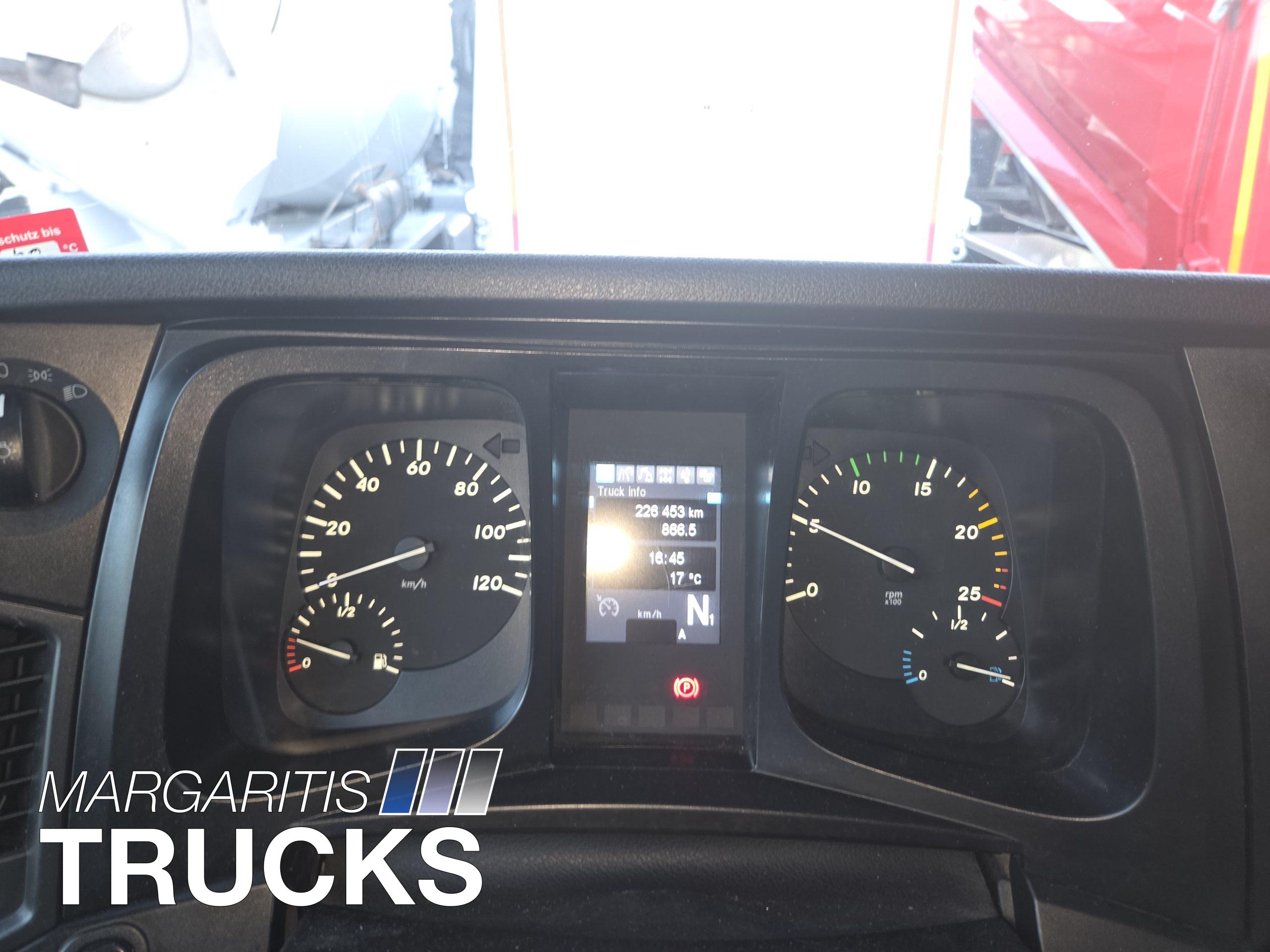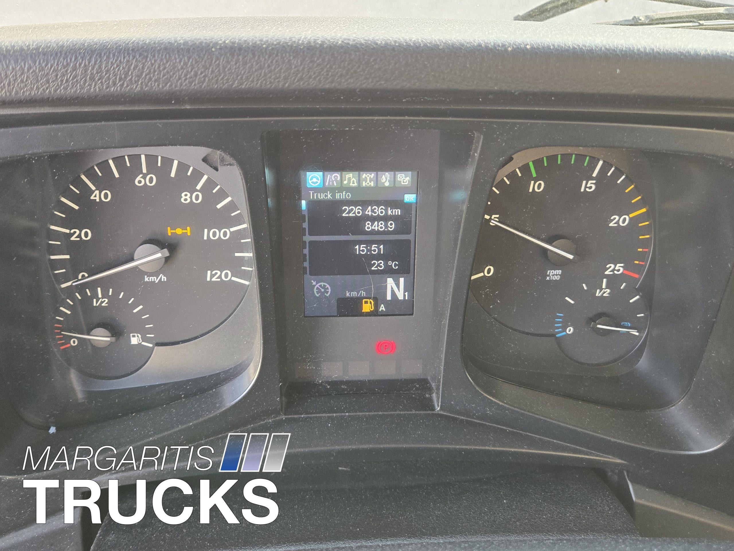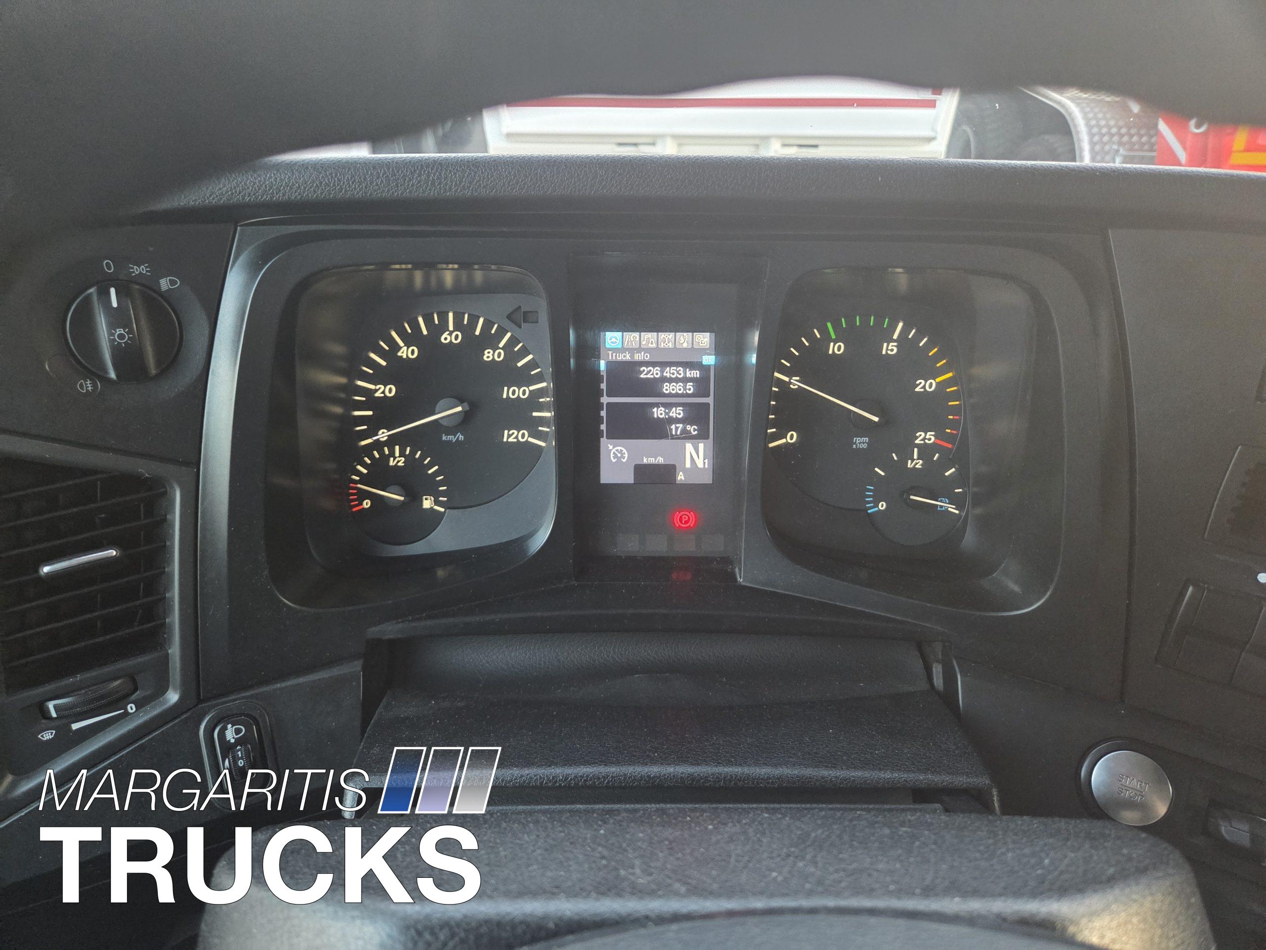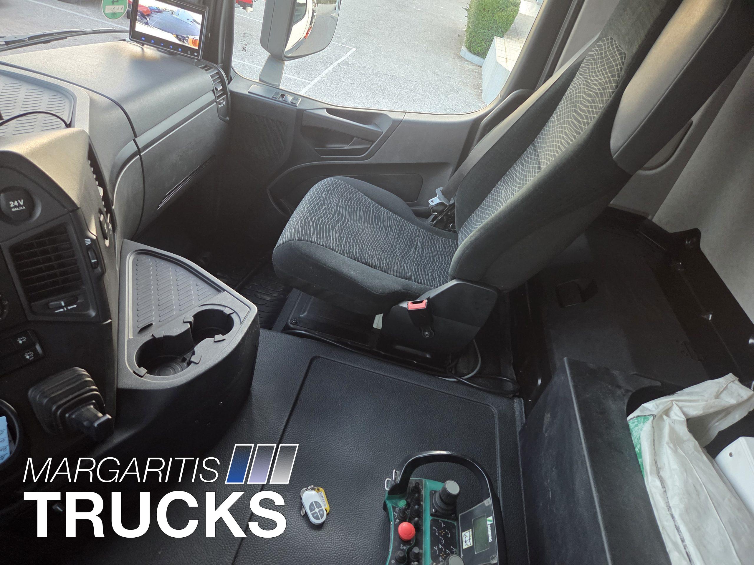 Αυτοκίνητο με κινητηρα πετρελαίου κατηγοριας καυσαεριων Euro 6 με AdBlue. Αυτοματο κιβωτιο ταχυτητων με 3 προγράμματα λειτουργίας Automatic, Automatic Power, Manual. Ηλεκτρικα ρυθμιζομενοι και θερμαινόμενοι καθρέπτες, κλιματισμος καμπινας, κάθισμα οδηγου αερος ανατομικο με ρυθμισεις πλάτης. Ηλεκτρικα παράθυρα , κεντρικο κλείδωμα με τηλεχειριστήριο. Ρυθμιζόμενο τιμόνι με χειριστήρια πολλαπλών λειτουργιών. Ψηφιακός ταχογράφος. Δεξαμενη πετρελαίου από αλουμίνιο. Δισκόφρενα εμπρός και πίσω. Ελαστικά 315/80 R22,5 με βάθος πέλματος στο 60%. ABS ,EBS, ASR. Cruise control.